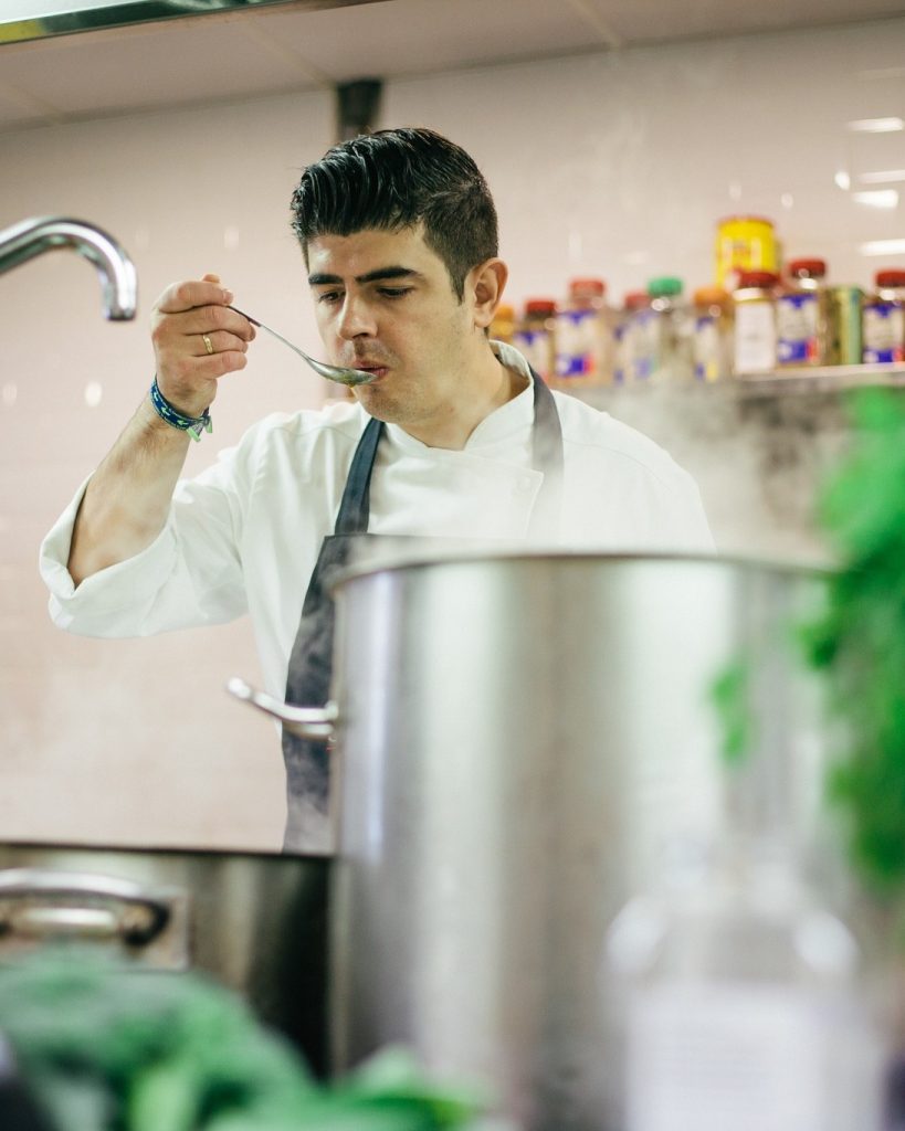 Una explosión de textura y sabor: bomba rellena de carne y puré con nuestra salsa brava. Un brindis en forma de tapa que emociona a todos los comensales.